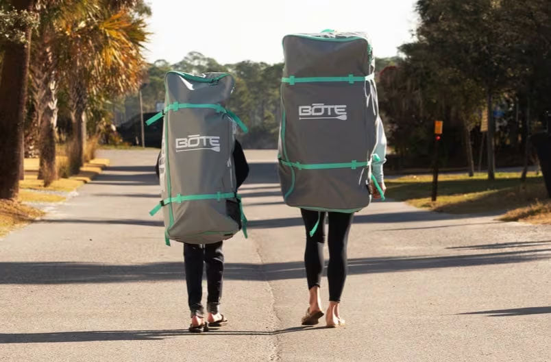 The sold separately Travelink™ is an adjustable carry strap that latches to the rail of your board to provide easier transport.